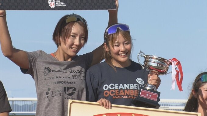 女子の決勝では五輪2大会連続出場のベテラン石井美樹選手と、若手の菊地真結選手が初めてペアを組み登場。1セット目から相手ペアを翻弄して、このセットを奪います。
