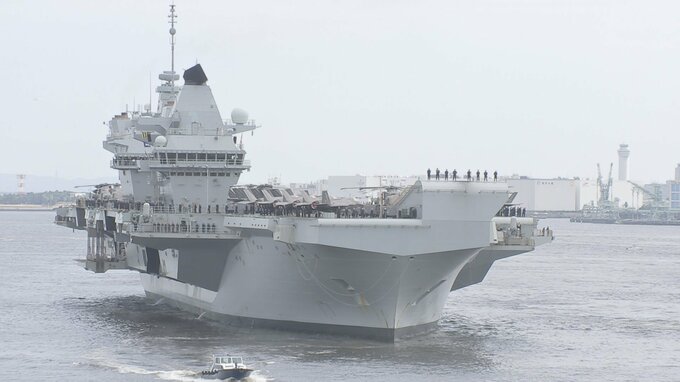 日本に寄港中のイギリスの空母プリンス・オブ・ウェールズが一般公開されました。記者「たくさんの数のF35B戦闘機が甲板の上にずらりと並んでいます」28日、横須賀から東京国際クルーズターミナルに移動したイギリ…