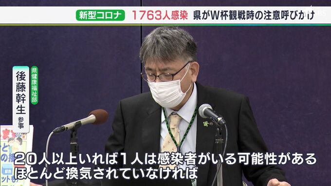 「15人以上店内にいて、換気が悪く、マスクなしで大声を出すなど騒ぐと20人以上いれば、1人は感染者がいる可能性がある。(観戦場所が)ほとんど換気されていなけければ、かなりの確率で多くの人に移る、というリスクを考えての行動をお願いしたい」