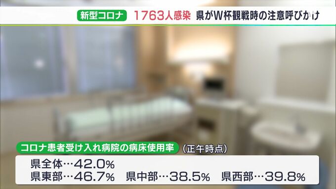 病床使用率は静岡県全体で42%で、最も高い静岡県東部では46.7%となっています。