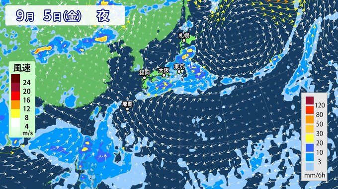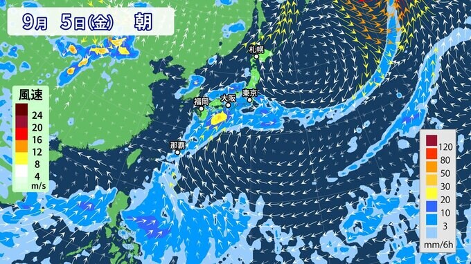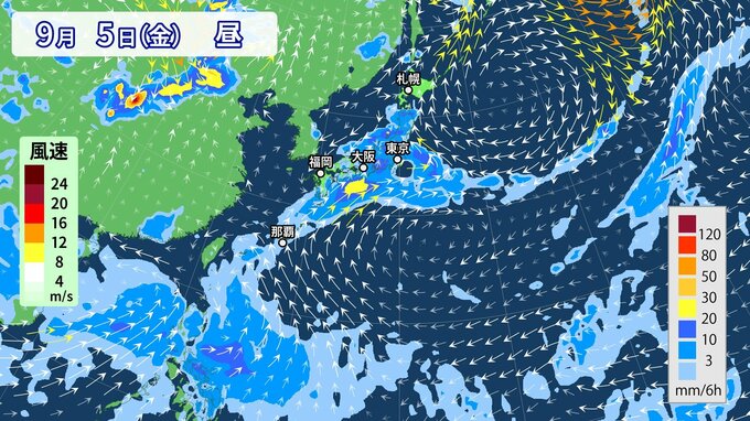 ▼熱帯じょう乱はどう進む?雨と風のシミュレーション(9/2~
