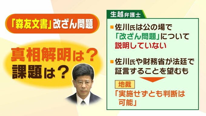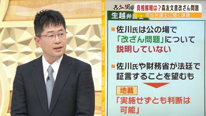 ーーー方、佐川元理財局長側の主張ですが、公務員が職務上他人に損害を与えた場合、国が賠償責任を負う場合は、個人として責任は負わないという主張です。生越先生によりますと、権限の乱用を防止する必要性があるのではないかと訴えています。