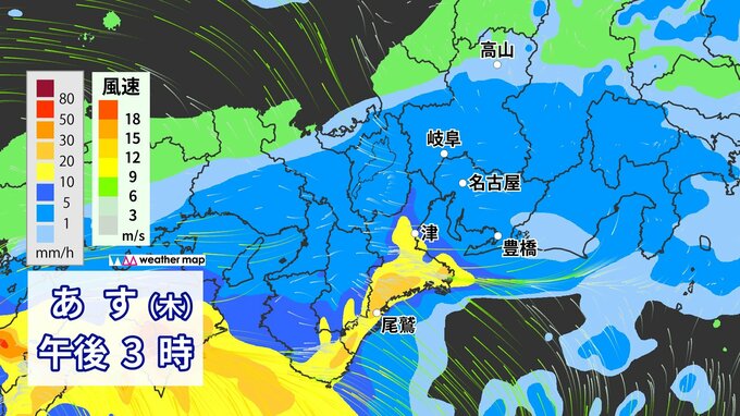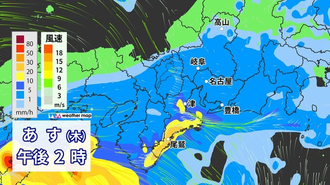 【台風情報】東海地方は台風接近前から大雨に警戒を あす未明にも台風15号発生へ 列島“直撃”予想 最新の雨・風シミュレーション 愛知・名古屋・岐阜・三重の天気予報 CBCテレビ 2025年9月3日(水) 18:03 国内 天気 昼頃になると三重県沿岸部を中心に活発な雨雲が流れ込み始める予想です。 進路図よりも、雨が強まるタイミングが少し早めに予想されているので、早めの備えをしておくということが重要となりそうです。