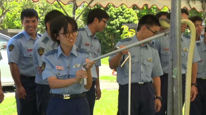 【写真】「ハブ捕獲」も警察官の仕事です ニョロニョロ逃げ回るヘビを恐る恐る捕獲 新人警察官が無毒の「アカマタ」を使って訓練