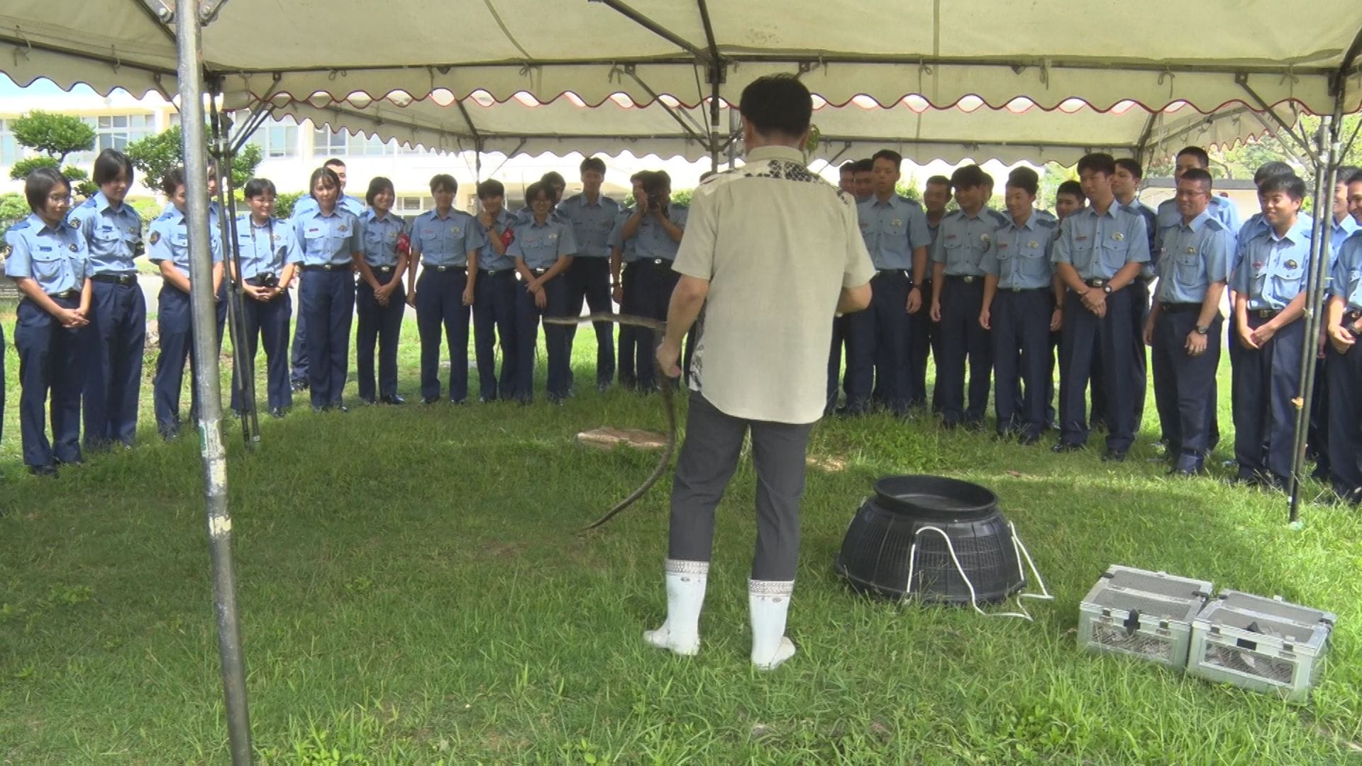 9月から11月にかけてはハブの活動が活発化する時期で、新人警察官は真剣な様子でハブへの対処方法を学んでいました。