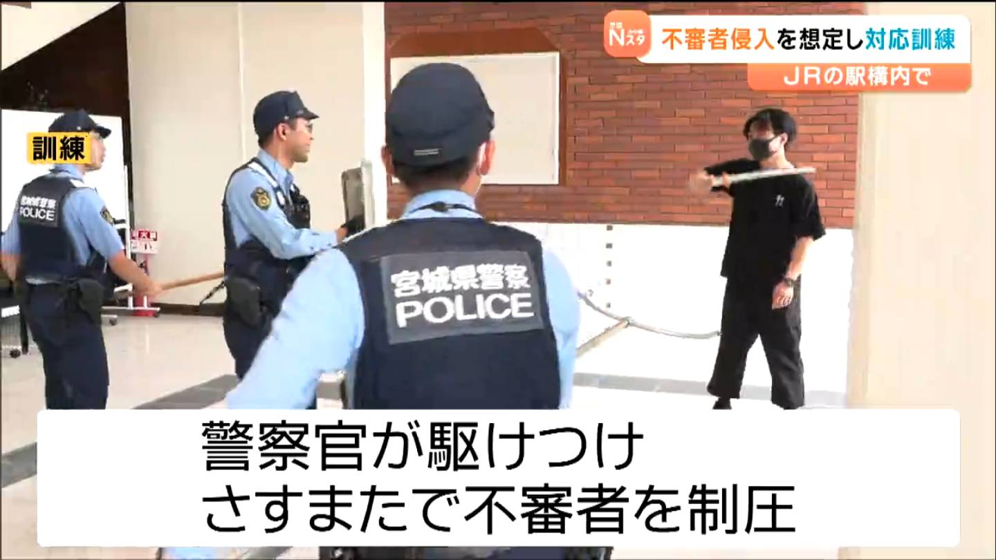 白石市では10月4日に全国育樹祭の開会式が行われる予定で、多くの人が訪れることから訓練を行ったものです。きょうは駅員向けの護身術の訓練などもあり、日常からの危機意識を高めていました。