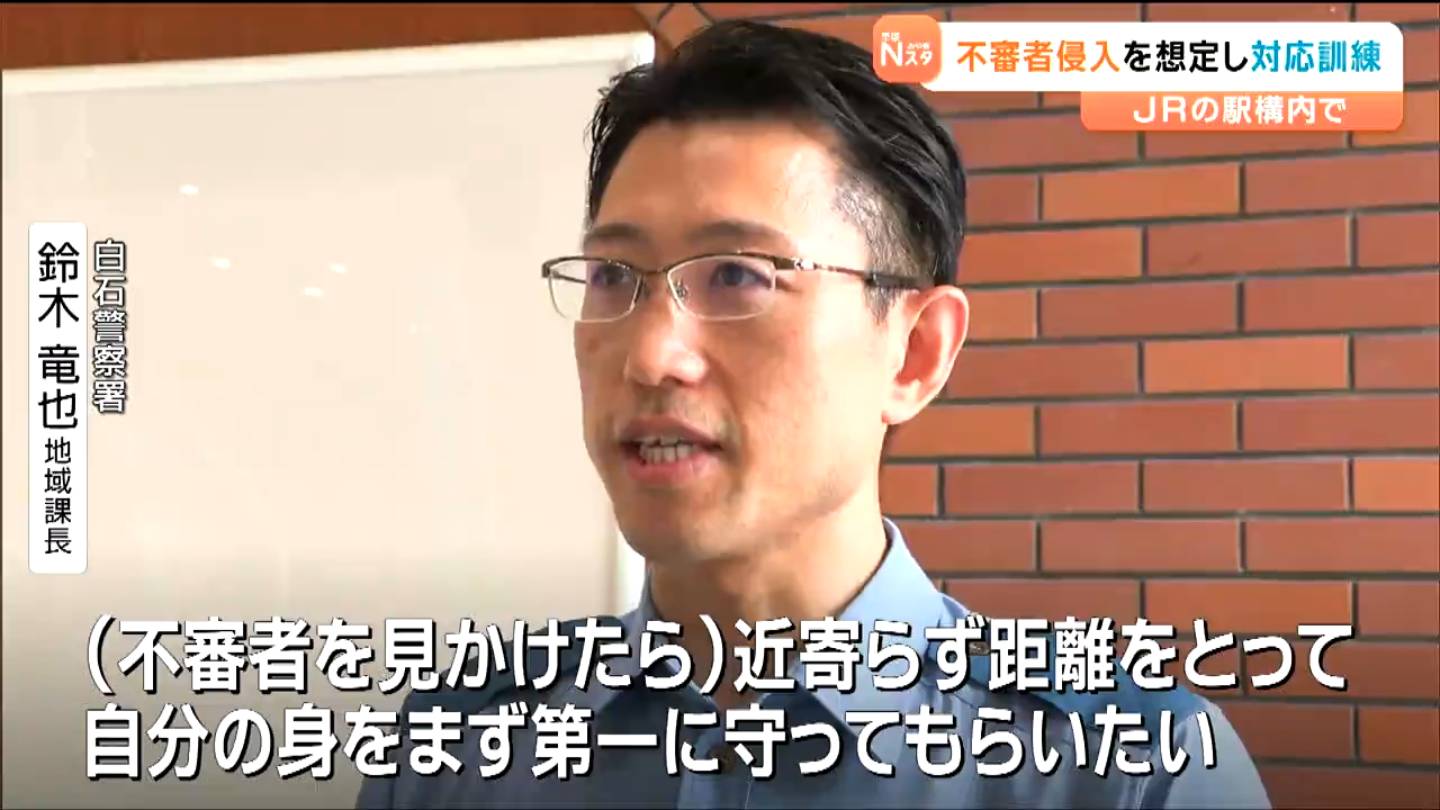 9月4日(木)に駅の構内に不審者が侵入した事態を想定し、JRの駅員と警察官が連携し、身柄を確保するまでの手順を確認する訓練が白石市で行われました。