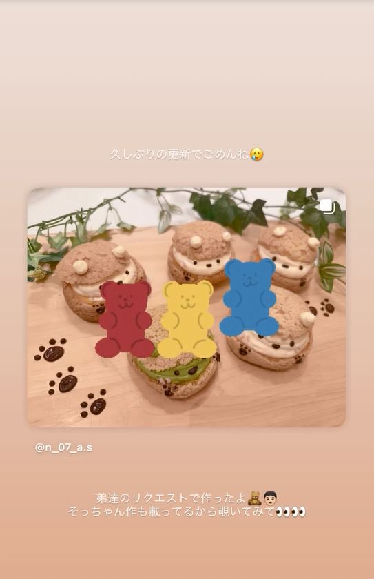 希空さんは、インスタグラムのストーリーズに「弟達のリクエストで作ったよ」と綴り、弟たちのために、このクッキーシューを作ったことを明かしています。