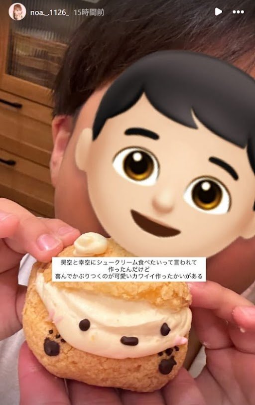 インスタグラムのストーリーズには、希空さんの弟がこのクッキーシューを食べる画像も投稿。希空さんは、「昊空と幸空にシュークリーム食べたいって言われて作ったんだけど 喜んでかぶりつくのが可愛いカワイイ 作ったかいがある」とコメントを添えています。