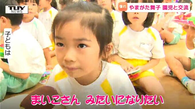 舞子さんへ子どもならではの質問も! やまがた舞子が幼稚園で交流 花笠を手に楽しい時間!(山形市) テレビユー山形 2025年9月5日(金) 18:44 国内 ■子どもたちは 子ども「すごかった。踊るの」 子ども「おしゃれでかわいい人」 子ども「舞子さんみたいになりたい。踊るのが上手になりたい」