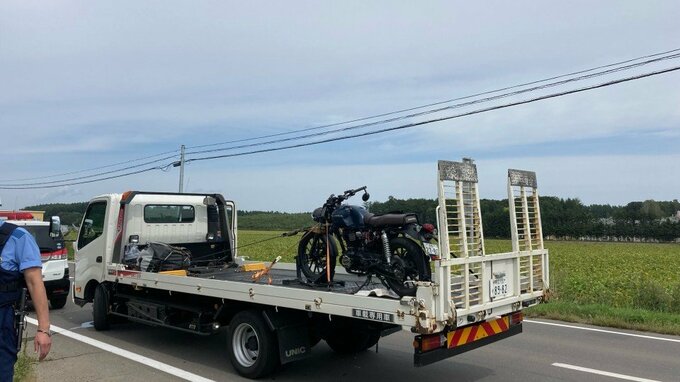6日朝、北海道上士幌町で、キャンピングカーとバイクの事故があり、バイクを運転していた20代の男性が意識不明の重体です。