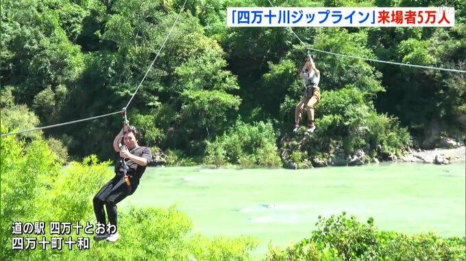 四万十川を眼下に滑空する「四万十川ジップライン」の来場者が5万人を達成しました。