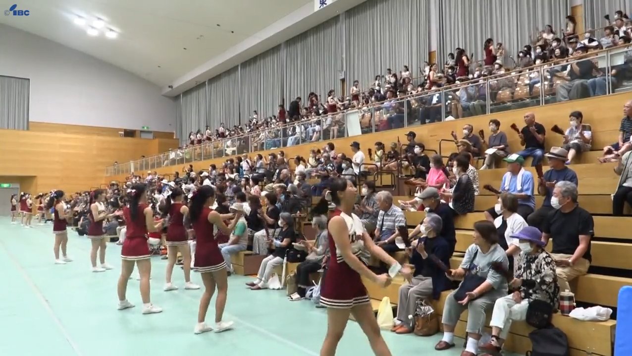 6日は、約200人の部員が合宿場所となっている宮古市の市民に感謝を込めて、代表曲「紺碧の空」をはじめ、吹奏楽団やチアリーダーズによる迫力あるパフォーマンスを披露しました。宮古市民歌の合唱や応援曲メドレーも行われ、会場は一体感に包まれました。