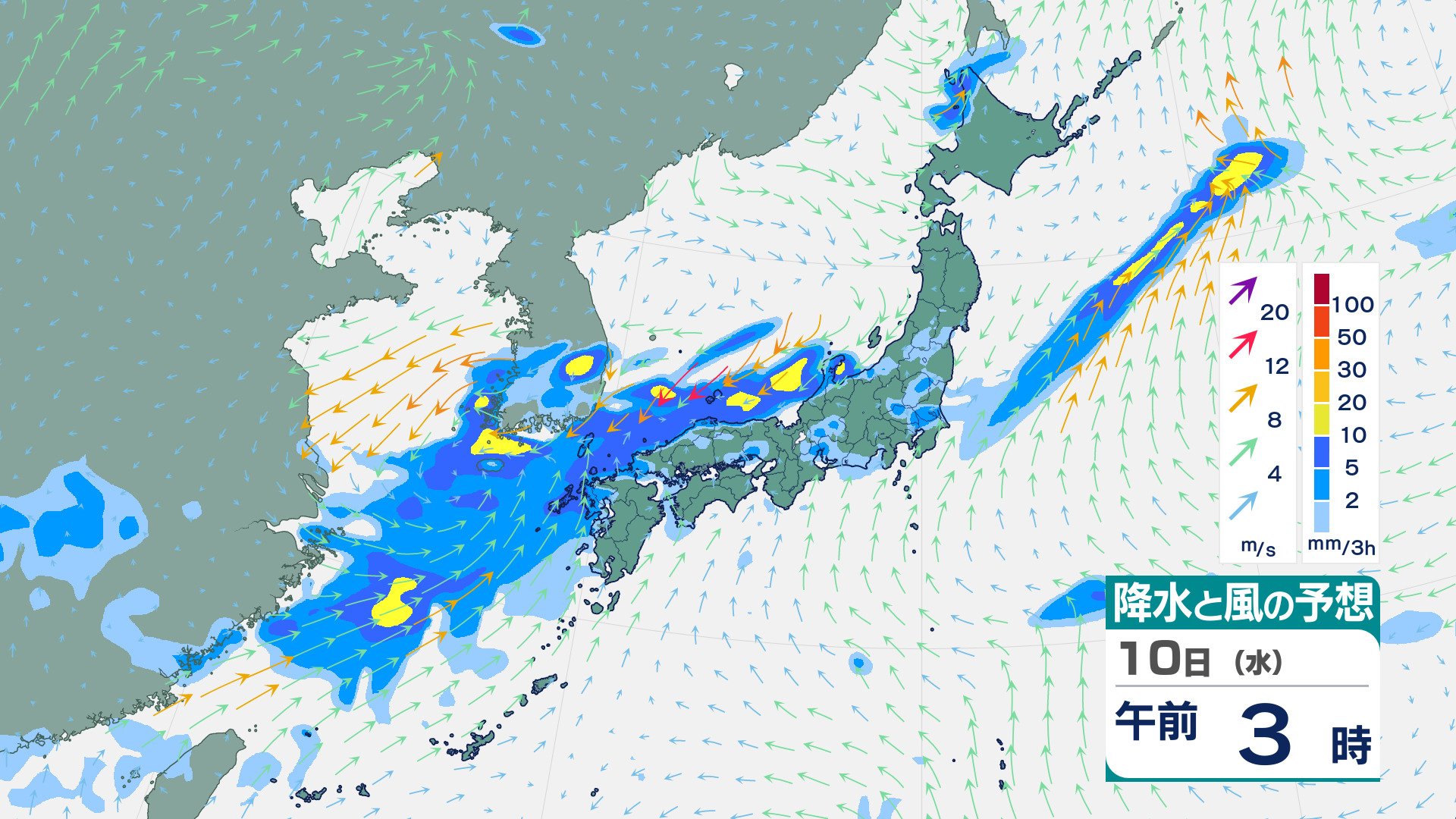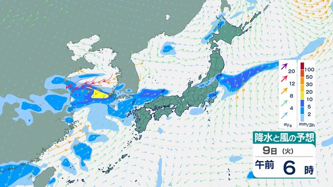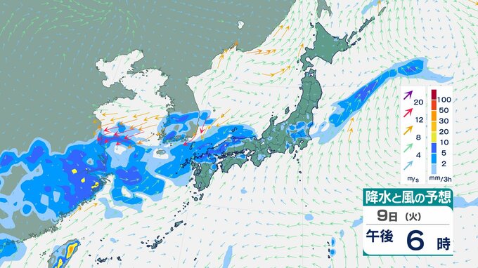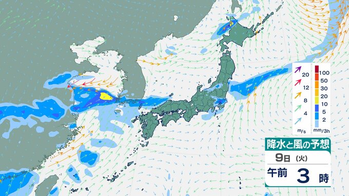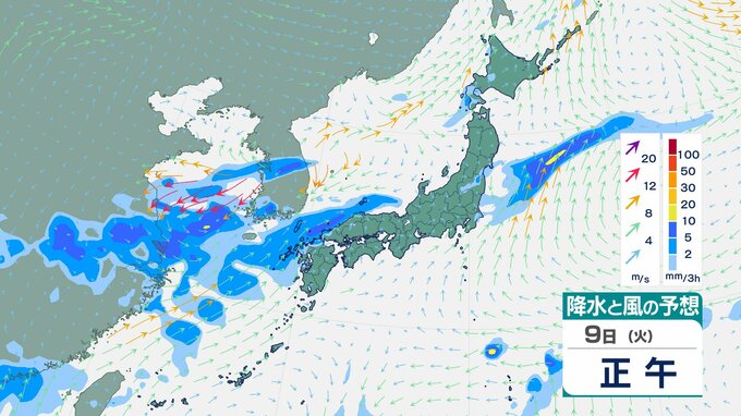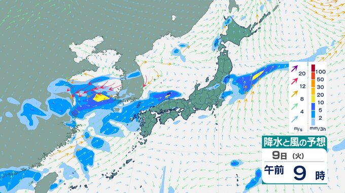 【大雨情報】新潟県と石川県は7日夜のはじめ頃~8日明け方にかけて線状降水帯発生の可能性 7日8日に1時間に予想される降水量 新潟50ミリ富山30ミリ石川40ミリ福井20ミリ【雨風シミュレーション】 チューリップテレビ 2025年9月7日(日) 11:55 国内 天気 9日(火)の雨風シミュレーション