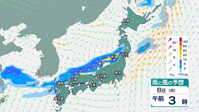 【大雨情報】新潟県と石川県は8日明け方にかけて線状降水帯発生の可能性 北陸地方は雷を伴って非常に激しい雨が降り大に…【雨と風のシミュレーション】 チューリップテレビ 2025年9月7日(日) 23:01 国内 天気 8日(月)雨と風のシミュレーション