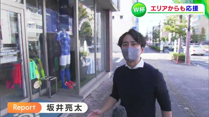 「昨日のコスタリカ戦、惜しくも日本代表敗れてしまったんですが、まだスペイン戦があります。地元のスポーツ用品店も特設売り場を設け、日本代表を応援しています。」