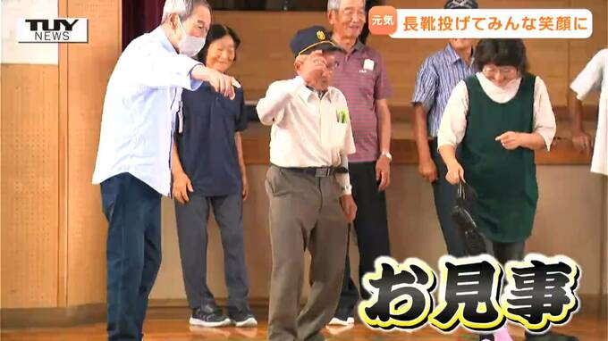 放物線を描き次々と宙を舞う! 一風変わった競技 "フライングシューズ" で爽やかな汗 90歳超えの参加者も!(山形・尾花沢市) テレビユー山形 2025年9月8日(月) 18:58 国内 ■90歳超えの参加者も! 最年長 大山光男さん(92)「92ッス。力が入らない年をとると。10点は狙っているけどそこまで届かない」 的は外しても見事なスローイン。お見事です。 チームメイト「我がチームでは一番の元気。我々も見習わなければ」