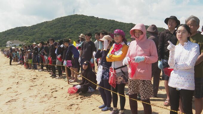 山口市の海水浴場で7日、恒例の「えび狩り世界選手権」が開かれました。