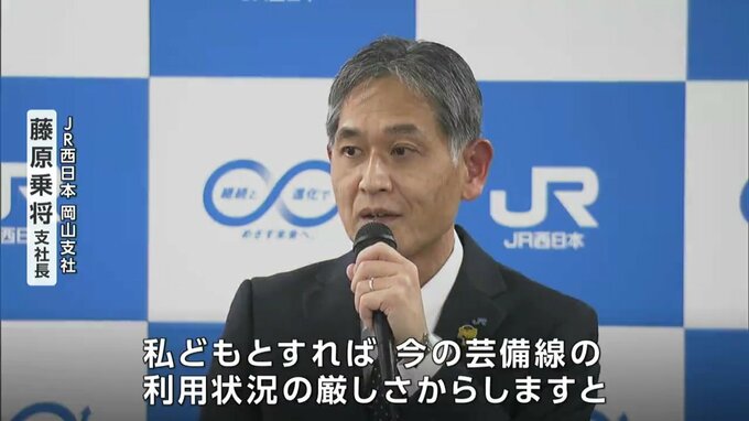きょうの会見でJR西日本岡山支社の藤原乗将支社長は、国に地域交通のあり方について議論する場を新たに設けて欲しいと要望したことを報告。沿線自治体に理解を求めつつローカル線が抱える問題に対応していきたいと述べました。