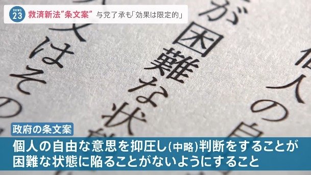 “マインドコントロール”を受けて行う寄付への規制を求めていた野党に配慮し、こんな条文を盛り込みました。