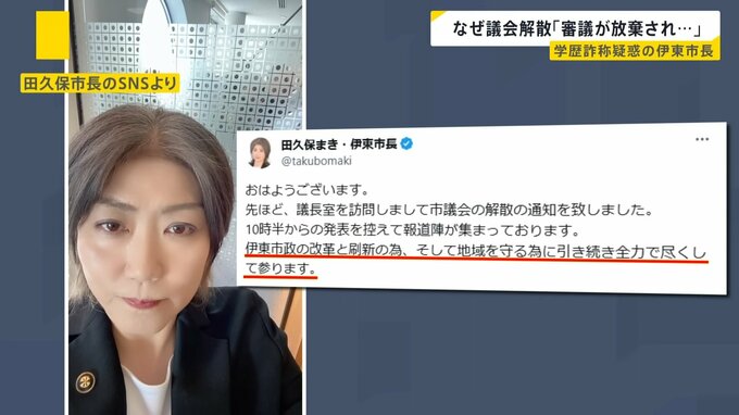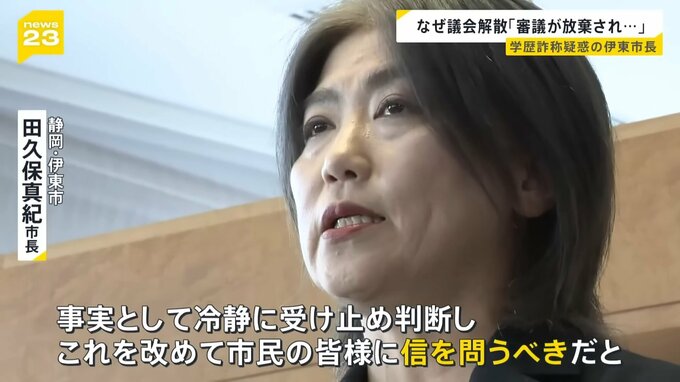 学歴詐称の疑いが指摘されている静岡県伊東市の田久保市長。「辞職か」もしくは「議会解散か」を迫られる中、出した答えは「解散」でした。田久保氏は「市民に信を問うべき」と主張していますが、市民の声は…