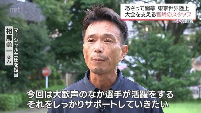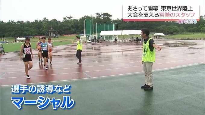 世界陸上では、選手を誘導したり、安全を確保したりするマーシャルという仕事の主任として全体を統括します。