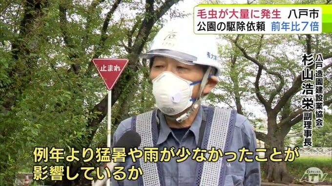八戸市では近年、「アメリカシロヒトリ」は3年ほどの周期で多く発生するとされています。駆除をする業者は、2025年の記録的な猛暑などが影響した可能性があると指摘します。