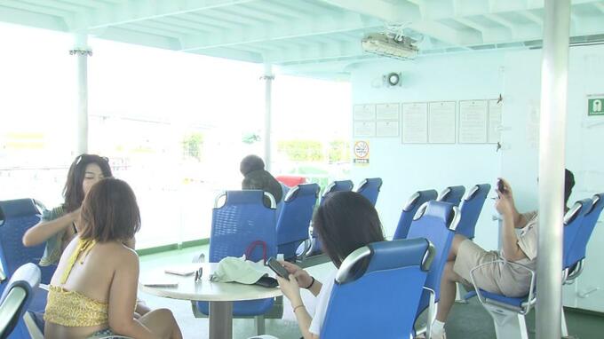 那覇市から周辺離島に向かう船内では11日、海を安全に楽しむための注意を呼びかけるアナウンスが3か国語で行われました。