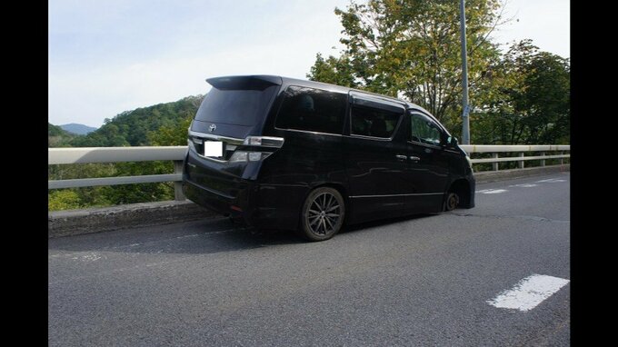 タイヤがぶつかった衝撃で、バンパーに傷がつくなど車の一部が破損しましたが、乗っていた人にけがはありませんでした。