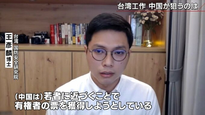 「中国は若い有権者の票を獲得しようとしています。(中略)中国は共産党の考えに近い若い議員を支援し、彼らを通じて中国と台湾の親密さや台湾は中国に返還されるしかないといった意見を宣伝します。重要なのは内容ではなく若い議員が言うことです」
