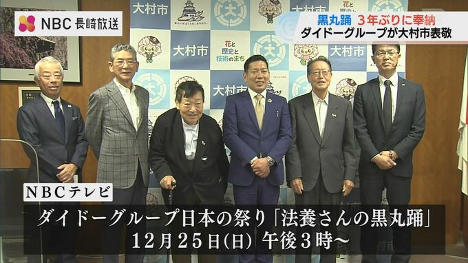 これに合わせ、番組のスポンサー企業で、テレビ番組などを通じて全国各地の祭りを応援しているダイドーグループホールディングスの高松前会長らが園田大村市長を表敬訪問しました。