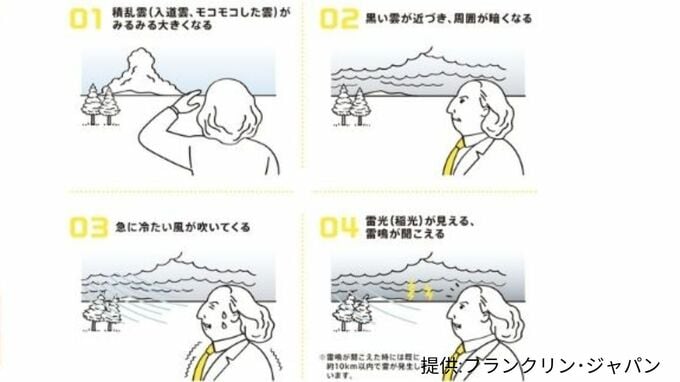 雷に詳しい日本大気電気学会によりますと、雷接近のサインで雷に備えることができるといいます。【画像②】のように、