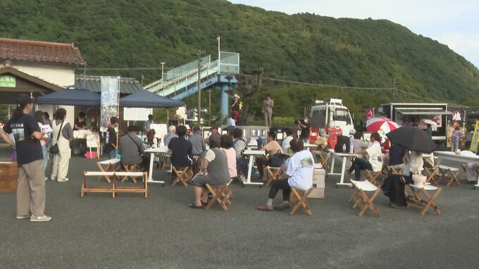 運休が続くJR美祢線の沿線を盛り上げようと山口県美祢市で14日、地域の特産品を販売するイベント「美祢線マルシェ」が開かれました。