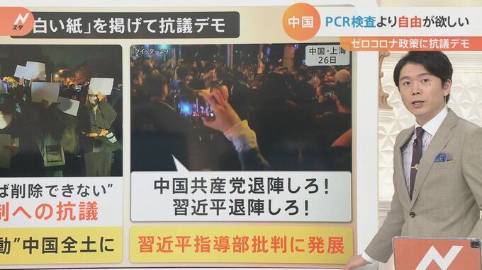 中国の過酷なゼロコロナ政策と、言論統制への抗議の意味をこめ「白紙であれば削除できない」と白い紙を掲げるデモ。この”白紙運動”が今、中国全土に広がり、今回は習近平指導部批判にも発展しています。中国では…