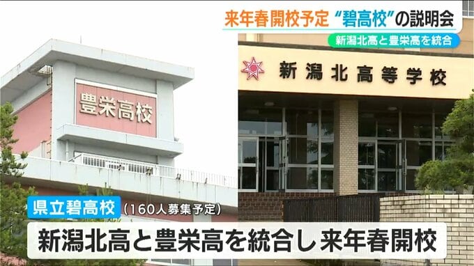 碧高校は新潟市 東区の新潟北高校と北区の豊栄高校を統合し、来年春に開校する高校で、新潟北高の校舎を利用し160人の新入生募集を予定しています。