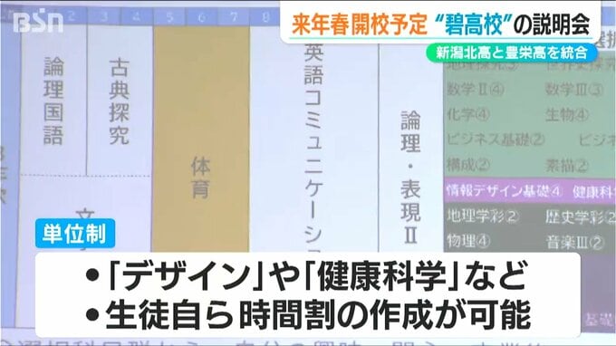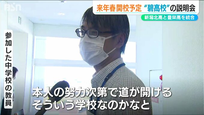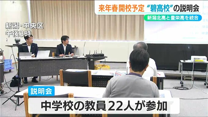 新潟北高校と豊栄高校を統合して来年春に開校する新しい県立高校『碧(あおい)高校』の説明会が16日行われました。単位制を導入し主体的に学び続ける力を育む高校を目指します。
