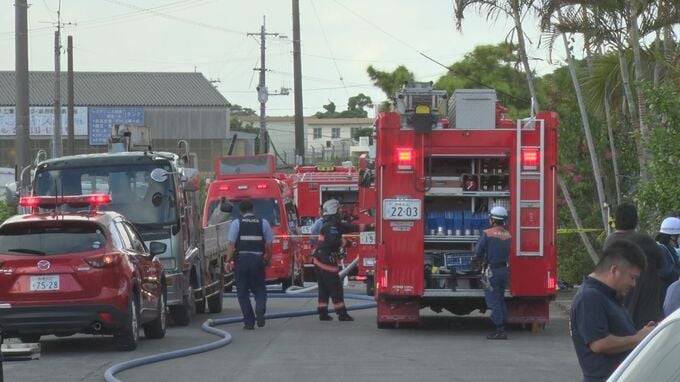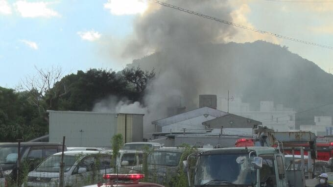 消防によりますと、16日午後3時ごろ沖縄市知花の自動車解体所で「建物内から煙と炎が見える」と通行人から119番通報がありました。