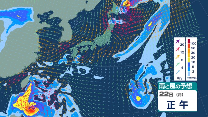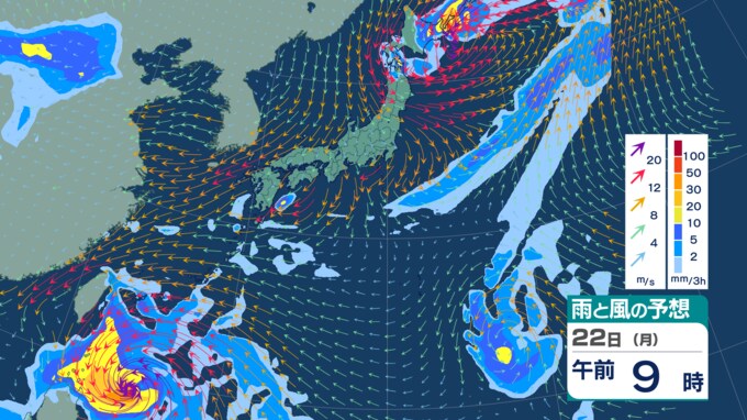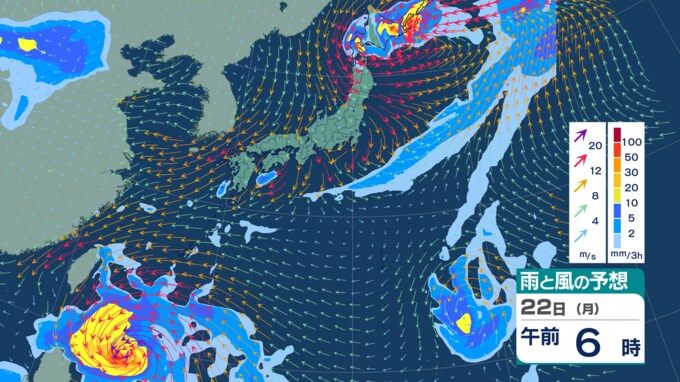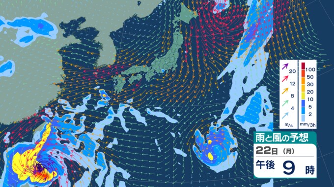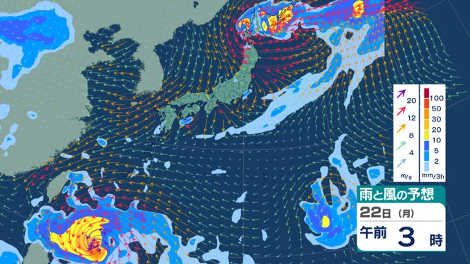 【ダブル台風情報】18日に『新たな台風』発生か “台風のたまご”=熱帯低気圧が2つ発生 一方は22日に暴風域伴い「沖縄の南」へ 今後の進路・勢力は?【雨風シミュレーション・気象庁最新情報】 青森テレビ 2025年9月17日(水) 14:55 国内 【22日(月)】3時間毎【5日先までの雨と風の予想シミュレーション】