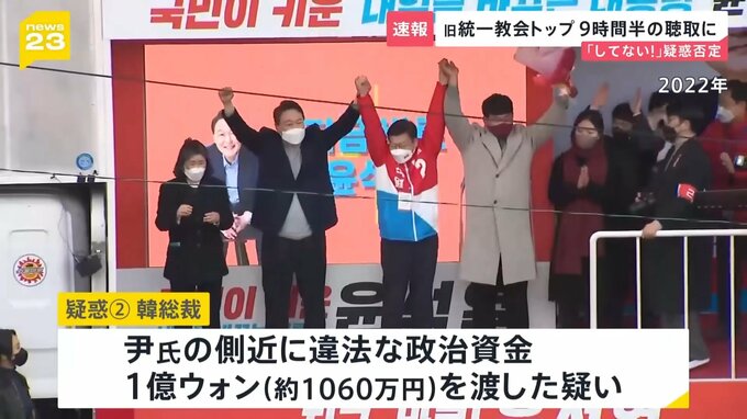さらに、16日に逮捕された尹氏の側近の国会議員について。大統領選の直前に、教団側が違法な政治資金1億ウォン、およそ1060万円を渡した疑いです。韓総裁は関与を否定しています。