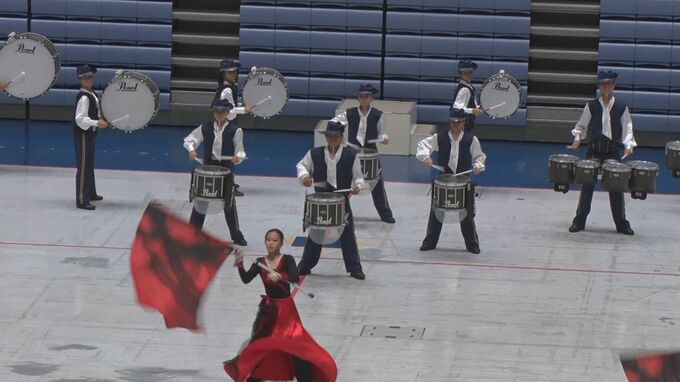 大会には県内の中学校と高校から合わせて9つの団体が出場し、このうち制限時間8分以内で自由に演奏と演技を行うフェスティバルの部では、3つの団体が登場して日ごろの練習の成果を発揮しました。