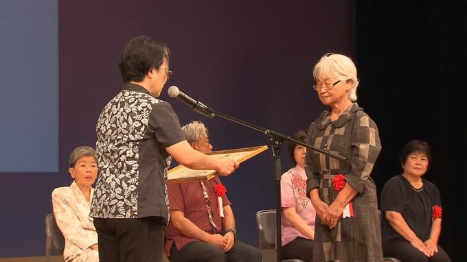 大会で「しまくとぅば普及功労者」として表彰されたうるま市の天願綾子さん(78)。これまで30年以上続けてきた、地域の子どもたちへの普及活動が評価されました。