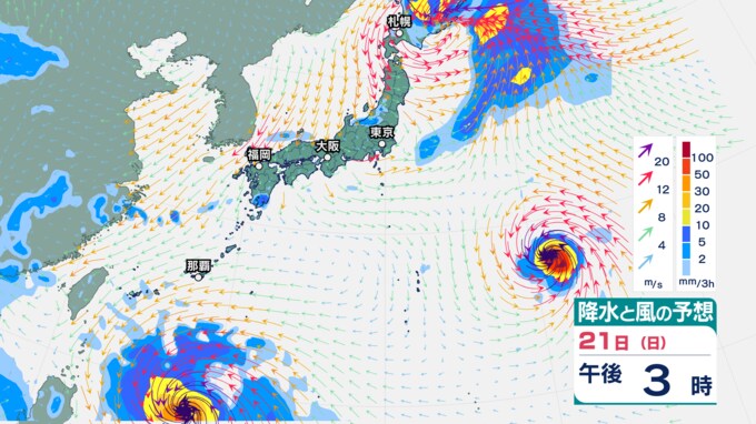 【トリプル台風】台風のたまご=熱帯低気圧が次々と台風に…今後の進路は?【台風17号、台風18号、台風19号の台風情報・雨と風のシミュレーション】