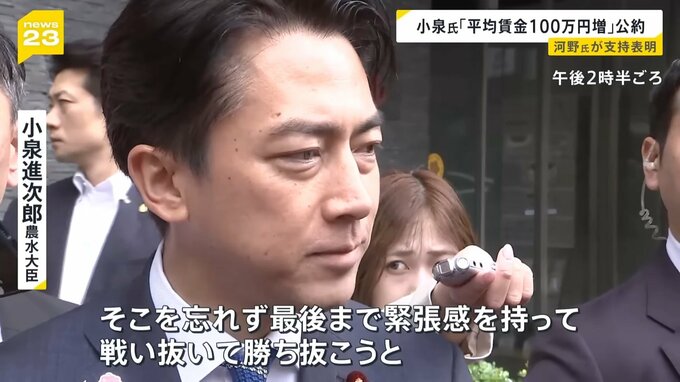 また、JNNの取材で、小泉氏が「2030年度までに平均賃金100万円増を目指す」ことなどを公約に盛り込むことがわかりました。