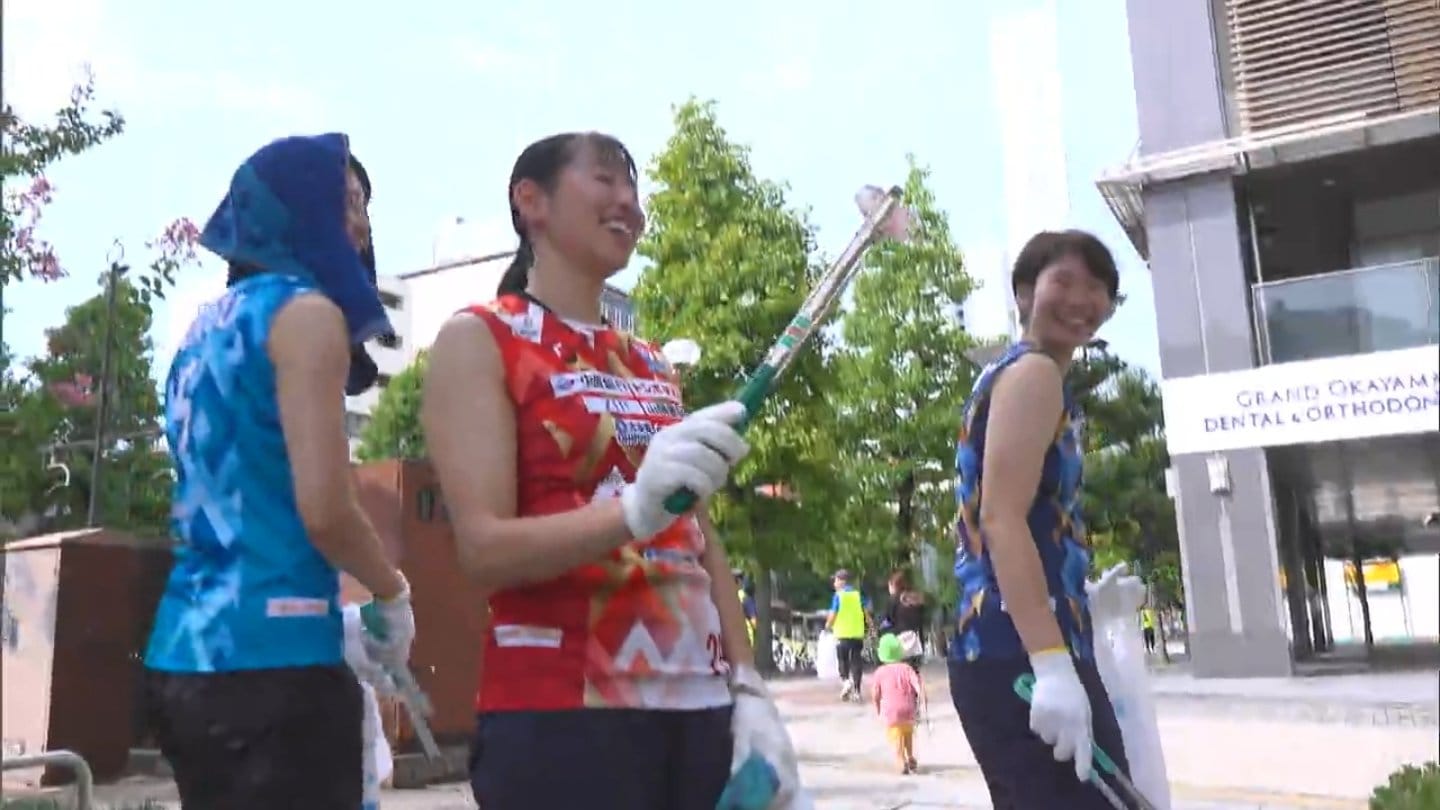 環境改善にもつながるプロギングの普及につながればと、女子バレーボール・岡山シーガルズの選手も駆けつけました。