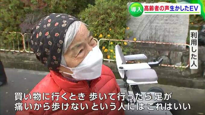そこで「交通手段がない」という高齢者の声を活かし、自宅からバス乗り場までの移動手段として、操作も簡単なEV車両が開発されました。