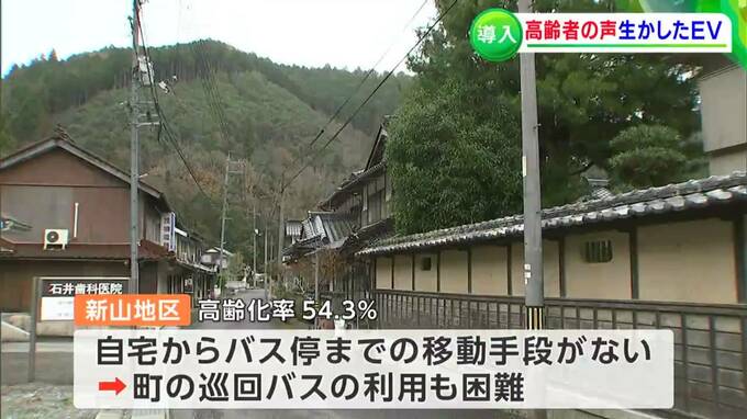高齢化率が54.3%の新山地区は、自宅からバス停までの移動手段がなく、巡回バスの利用も困難な状況になっています。