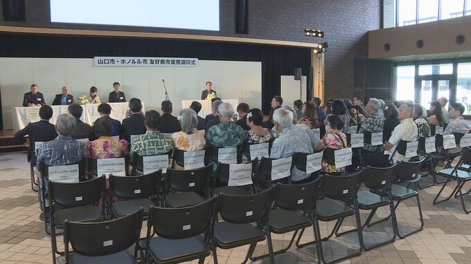 交流を通じて子どもたちの英語力の向上につなげようと、山口市がアメリカ・ハワイ州のホノルル市と友好都市提携を結びました。