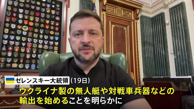 ウクライナのゼレンスキー大統領は、無人艇など必要以上に多く保有している兵器の輸出を開始すると明らかにしました。ゼレンスキー大統領は19日、ビデオ演説で「特定の兵器については、現在ウクライナで必要な量を…