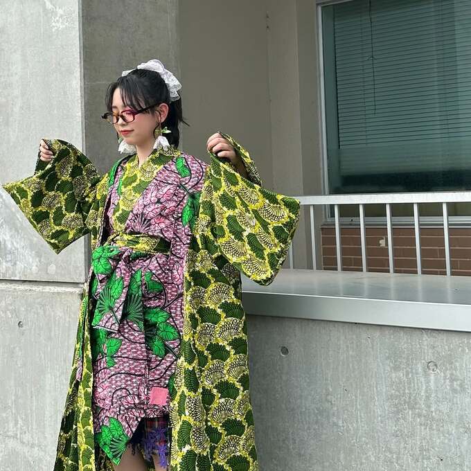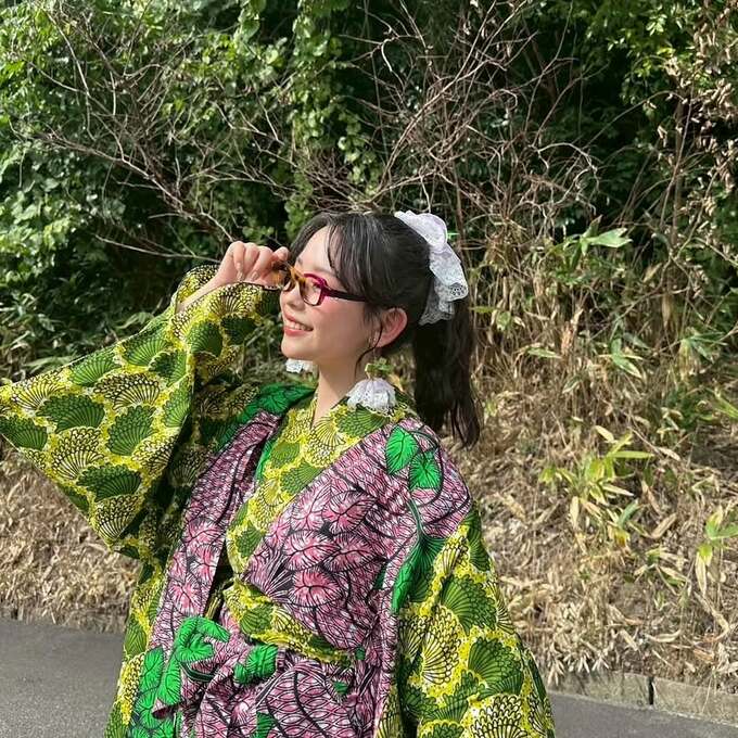 梶原さんが身につけていた衣装は、緑と黄色、ピンクの大きな葉柄が特徴的なデザインの着物。梶原さんはこの衣装について「カラフルで華やかですごく可愛かったです」と投稿。