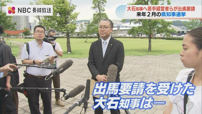 2026年2月の県知事選挙について、大石知事はこれまで出馬するかどうか態度を明らかにしていません。そんな中、長崎県内の若手経営者で作る会が県庁を訪れ、直接出馬を要請しました。